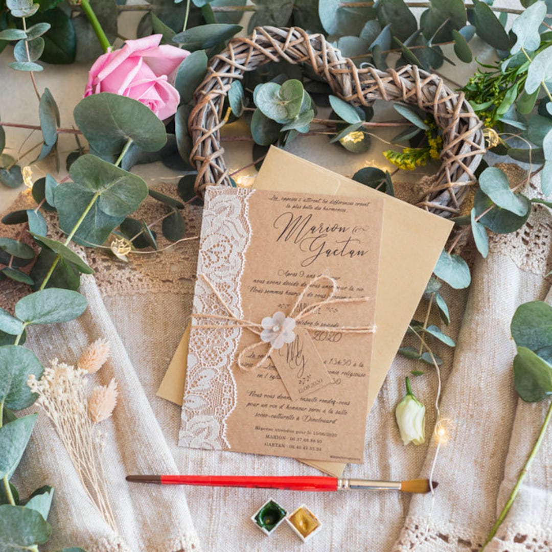 Faire part Mariage Champêtre Invitation Mariage Kraft Avec Etsy