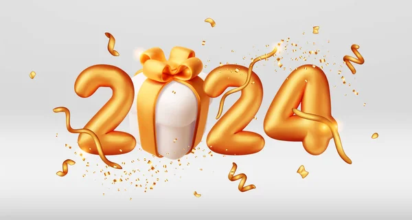 Set, Neujahr 2024 Zahlen Folienballons, Rosafarbener Goldener